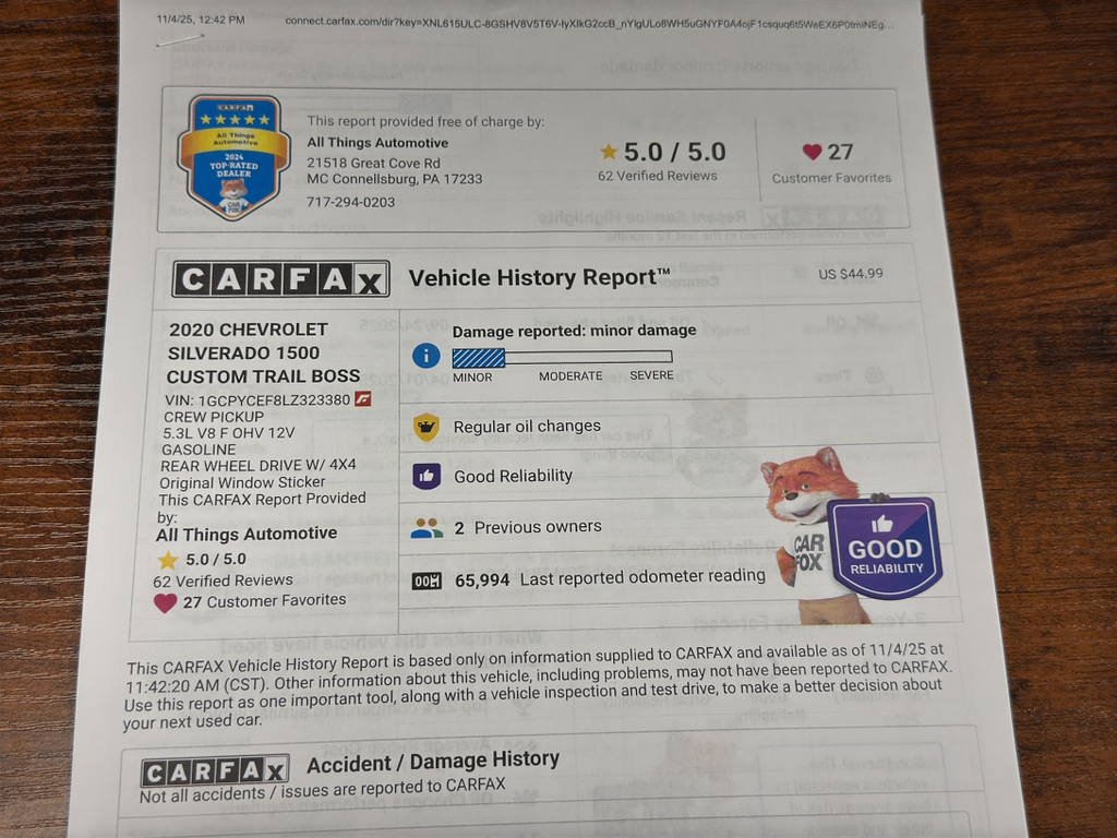 Located in McConnellsburg, PA, this Chevrolet Silverado is competitively priced and offers the best value in the area. Whether you need a dependable work truck, weekend adventure rig, or a daily driver with muscle, this 2020 Chevrolet Silverado 1500 Custom Trail Boss delivers. Schedule a test drive today to experience the power of the 5.3L V8, responsive 4WD, and Trail Boss capability firsthand — the best-priced Chevrolet Silverado in McConnellsburg won't last long.