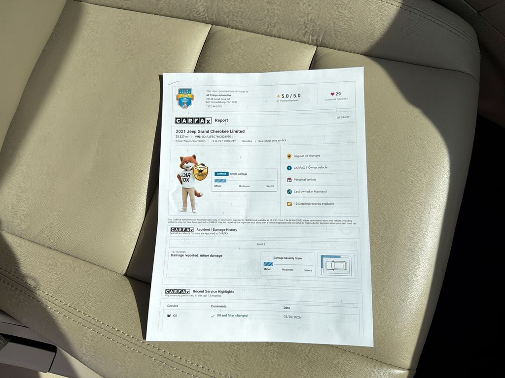 2021 Jeep Grand Cherokee Limited — 4WD, V6 3.6L, 25,325 miles — Located in Cumberland, MD This carefully maintained 2021 Jeep Grand Cherokee Limited blends capability and comfort with low mileage and a powerful 3.6L V6 paired to a responsive four-wheel-drive system. At just 25,325 miles, this Jeep Grand Cherokee offers long-term value and dependable performance for year-round driving in Cumberland, MD and beyond. The Limited trim delivers premium features including leather seats, remote start for cold or hot mornings, and Android Auto integration for seamless smartphone connectivity on every drive. Entertainment is covered with XM Radio, while rear parking sensors make maneuvering into tight spots easier and safer. Thoughtfully designed interior appointments and spacious seating make this SUV ideal for families, commuters, and weekend adventurers who want refinement and utility in one package. Service records reflect routine maintenance and careful ownership, enhancing confidence with this low-mileage example. Priced competitively, this vehicle presents the best price in the area for shoppers seeking value without sacrificing quality. Whether you need a capable 4WD for challenging weather or a comfortable, tech-equipped cabin for daily use, this Jeep Grand Cherokee Limited is ready to meet your needs. Schedule a test drive in Cumberland, MD to experience its blend of performance, comfort, and advanced features firsthand.