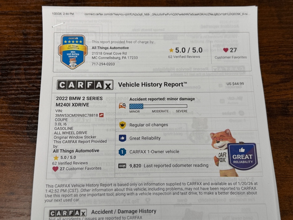 Priced competitively, this 2022 M240i xDrive represents the best price for a performance-oriented BMW in the region — an ideal opportunity for drivers seeking sporty dynamics, modern tech, and reliability without the new-car cost. Whether commuting through changing Pennsylvania weather or hitting winding back roads, the M240i's blend of power, precision, and practicality delivers an engaging drive.