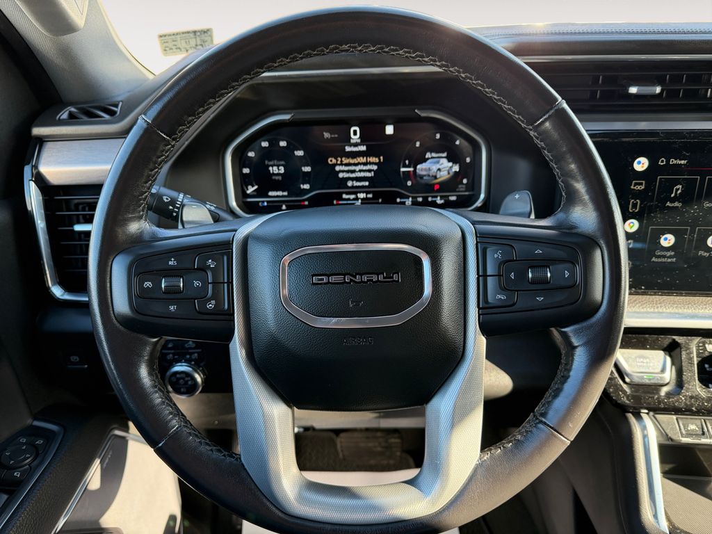 Preferred Equipment Group 5SA: Trailer Side Blind Zone Alert; Chrome Wheel to Wheel Assist Steps; Power Sliding Rear Window with Rear Defogger; Ultrasonic Front and Rear Park Assist; Trailer Camera Provisions; Electric Rear-Window Defogger; Theft Deterrent System (unauthorized Entry); Chrome Header with Signature Denali Chrome Grille; Front Rainsensing Wipers; Heavy-Duty Air Filter; Compass; Heated Steering Wheel; 120-Volt Instrument Panel Power Outlet; Heated Driver and Front Outboard Passenger Seating; Wireless Charging; Color-Keyed Carpeting Floor Covering; OnStar and GMC Connected Services Capable; Heated 2nd Row Outboard Seats; Power Front Passenger Windows with Express Up/down; Premium Bose 7-Speaker Sound System; Power Rear Windows with Express Down; Integrated Trailer Brake Controller; HD Surround Vision; Ventilated Driver and Front Passenger Seats; Power Rake and Telescoping Steering Column; Keyless Open and Start; Perimeter Lighting; Push Button Start; LED Cargo Area Lighting; Remote Vehicle Starter System; In-Vehicle Trailering App; Hill Descent Control; Floor-Mounted Center Console; 170 Amp Alternator; 20" X 9" Multi-Dimensional Polished Aluminum Wheels; Bed View Camera; Auxiliary External Transmission Oil Cooler; Rear Cross Traffic Braking; GMC Pro Safety; Electrical Steering Column Lock; Trailering Package; Wireless Phone Projection; 2 USB Ports; 2 Charge/data USB Ports Inside Center Console; Chrome Recovery Hooks; Denali Premium Suspension with Adaptive Ride Control; Steering Wheel Audio Controls; 2 type-C Charge-Only Rear USB Ports; GMC Connected Access Capable; Universal Home Remote; 2-Speed Transfer Case; Deep-Tinted Glass; Spray-On Pickup Bed Liner with Denali Logo; SiriusXM with 360L; Hitch Guidance with Hitch View; Power Front Windows with Driver Express Up/down; Rear Pedestrian Detection; Wi-Fi Hotspot Capable; Rear Wheelhouse Liners; Auto-Locking Rear Differential; Power Door Locks. Titanium Rush Metallic. **Equipment listed is based on original vehicle build and subject to change. Please confirm the accuracy of the included equipment by calling the dealer prior to purchase.**