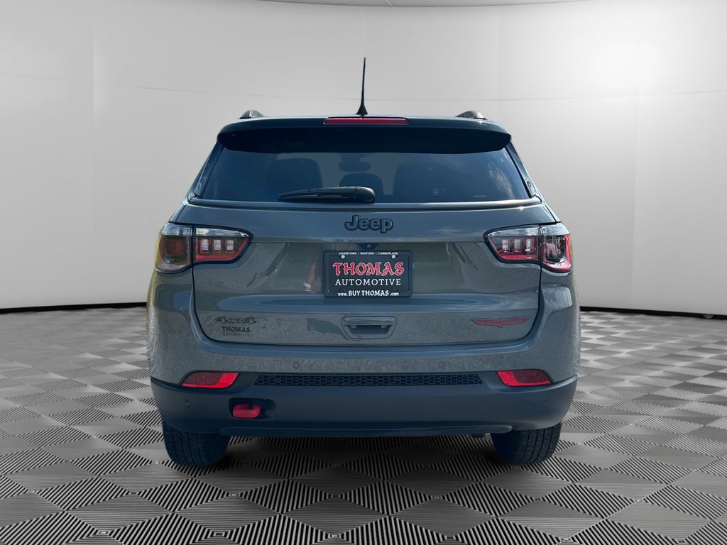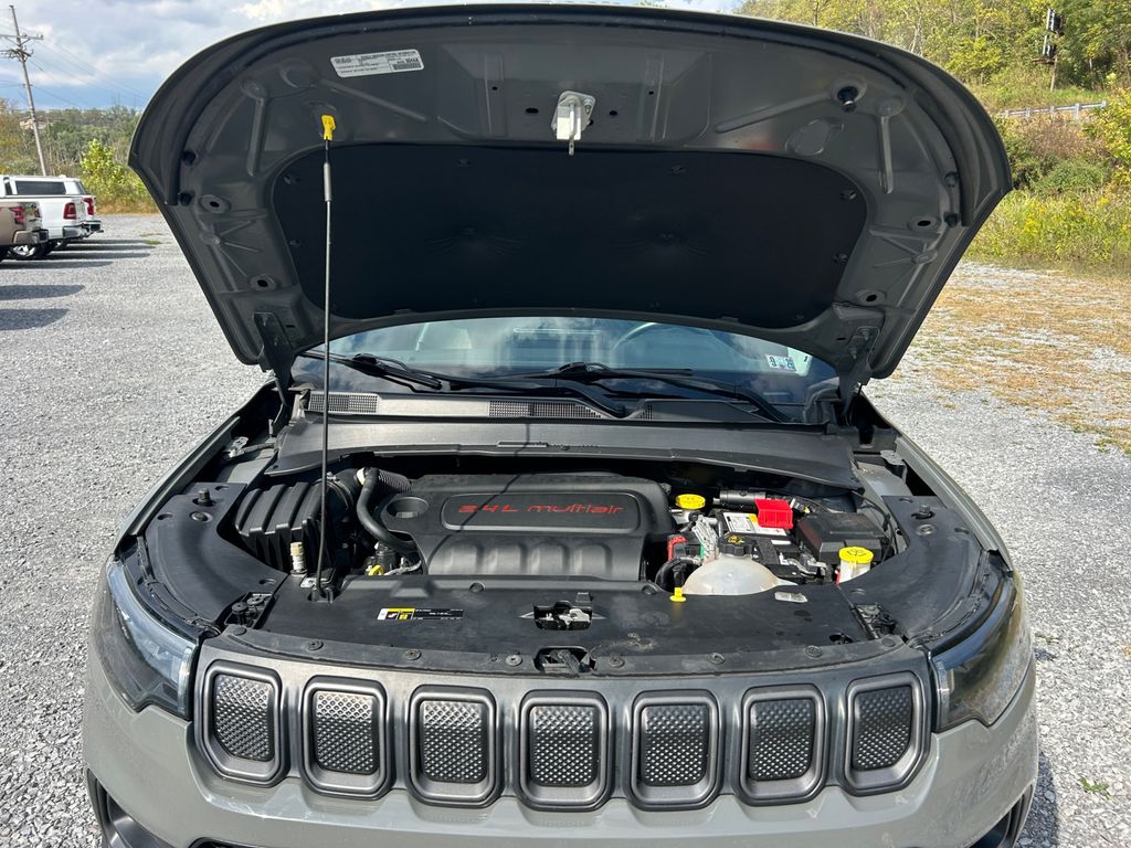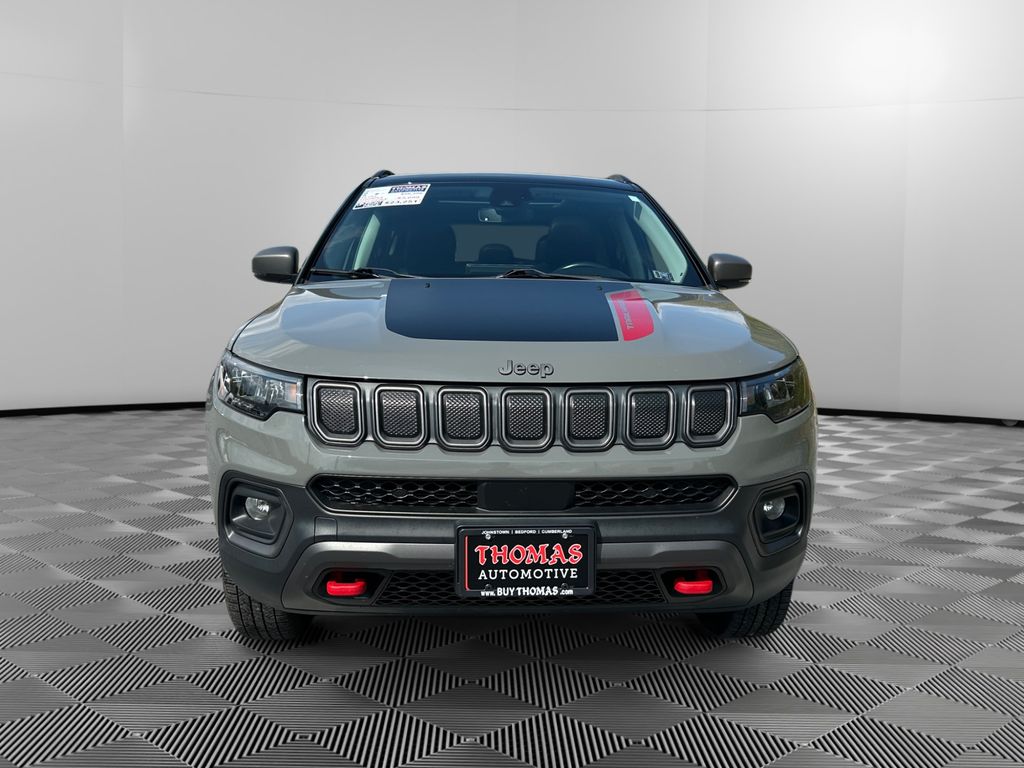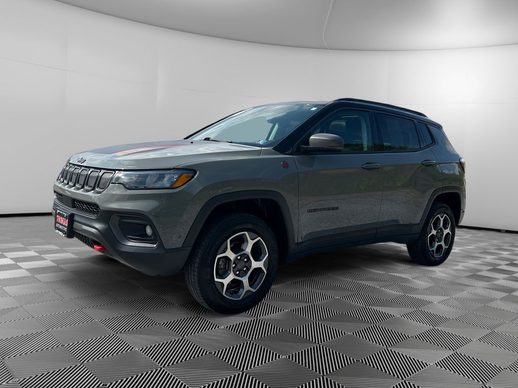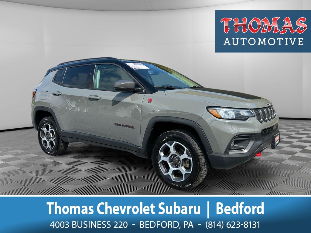 2022 Jeep Compass Trailhawk 4WD — 37,582 miles — Bedford, PA. Ready for adventure, this rugged Trailhawk pairs off-road capability with commuter comfort. Powered by a responsive 2.4L 4-cylinder engine and smooth automatic transmission, the Jeep Compass Trailhawk handles snow, mud, and highway miles with confidence thanks to its 4WD system and Trailhawk-tuned suspension.