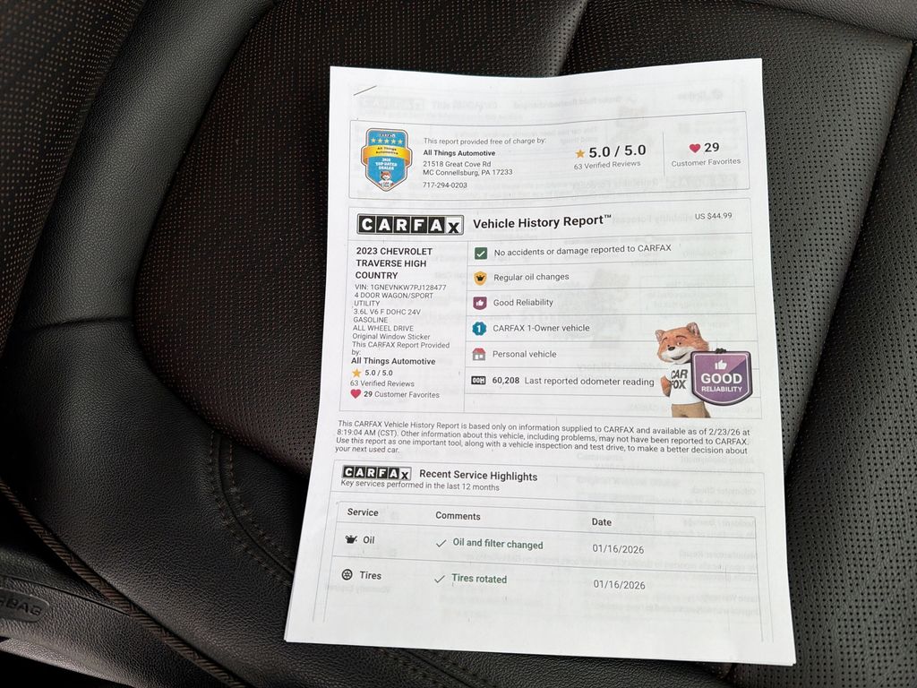 2023 Chevrolet Traverse High Country AWD — Bedford, PA. This premium three-row SUV pairs a robust 3.6L V6 gasoline engine with confident all-wheel drive for smooth highway cruising and sure-footed handling in Pennsylvania weather. The High Country trim delivers upscale comforts including genuine leather seats, heated steering wheel, and advanced navigation to keep every drive organized and comfortable. Equipped for connectivity and convenience, this Chevrolet Traverse supports Android Auto and features remote start for chilly mornings. Interior refinements and generous passenger space make it ideal for families or professionals who need cargo versatility without sacrificing style. Safety and tech are integrated seamlessly, providing peace of mind on long commutes and weekend getaways. This vehicle is located in Bedford, PA, and is competitively priced to offer the best value in the area. With a focus on quality, performance, and features that matter—heated steering wheel, leather seating, navigation system, Android Auto, remote start—this Chevrolet Traverse High Country stands out among pre-owned SUVs. Whether you prioritize comfort, technology, or dependable AWD capability, this model delivers. Schedule a test drive in Bedford today to experience the refined ride and powerful V6 performance firsthand. Competitive pricing ensures you're getting the best deal on a fully featured 2023 Chevrolet Traverse High Country.
