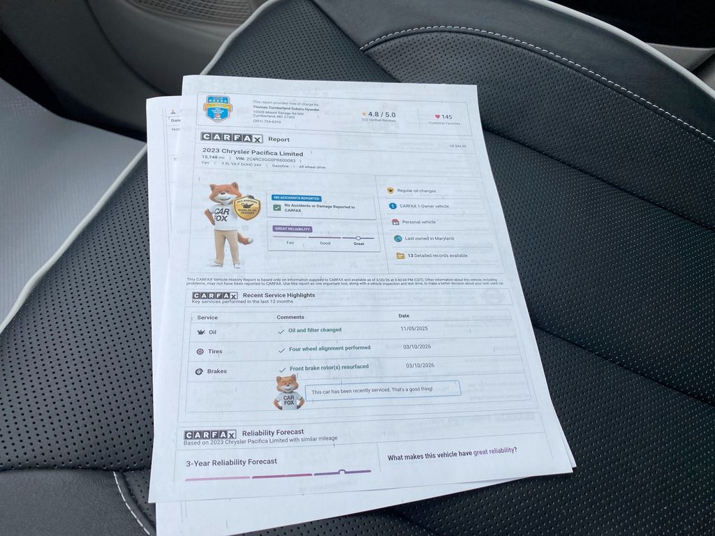 Immaculate 2023 Chrysler Pacifica Limited — 0 miles, AWD, V6 3.6L gas — located in Cumberland, MD. This like-new Chrysler Pacifica Limited combines refined comfort, advanced safety, and powerful performance with the convenience of all-wheel drive and a proven 3.6L V6 engine. With exceptionally low mileage and a CARFAX Clean Report, this Chrysler Pacifica delivers peace of mind and exceptional value at the best price in the area. Premium features include Lane Departure Warning and Forward Collision Warning for intelligent safety assistance on every drive. Stay connected with Apple CarPlay and an integrated infotainment system, plus XM Radio for endless entertainment. The Limited trim provides upscale materials, thoughtful technology, and versatile seating for families or weekend adventures. This Chrysler Pacifica is perfect for drivers who demand capability and refinement: smooth V6 performance, confident AWD traction in changing weather, and family-friendly versatility inside a stylish package. The zero miles and low mileage history mean you're getting near-new condition with immediate availability in Cumberland, MD — a rare find at a competitive, best-price offering. Schedule a viewing or test drive today to experience the comfort, safety, and performance of this 2023 Chrysler Pacifica Limited. Don't miss out on a like-new vehicle with premium features, a clean CARFAX report, and unbeatable value in the Cumberland area. Act now for the best deal.