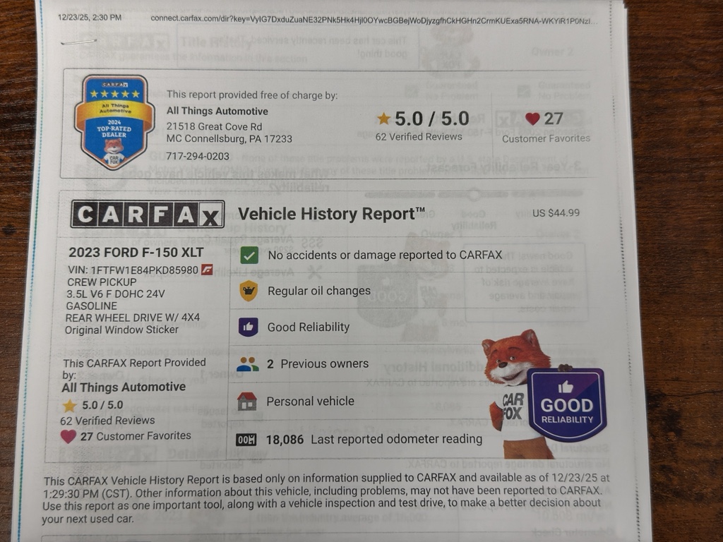 This Ford F-150 combines practical utility with refined features—spacious cabin, versatile bed, and advanced technology—making it ideal for work, recreation, or daily driving. Priced to sell, it offers the best price in the area for a low-mileage 2023 Ford F-150 XLT with 4WD and numerous desirable options. Schedule a test drive in McConnellsburg, PA today to experience its performance and comfort firsthand. Act quickly—vehicles with this condition and value do not stay available for long.