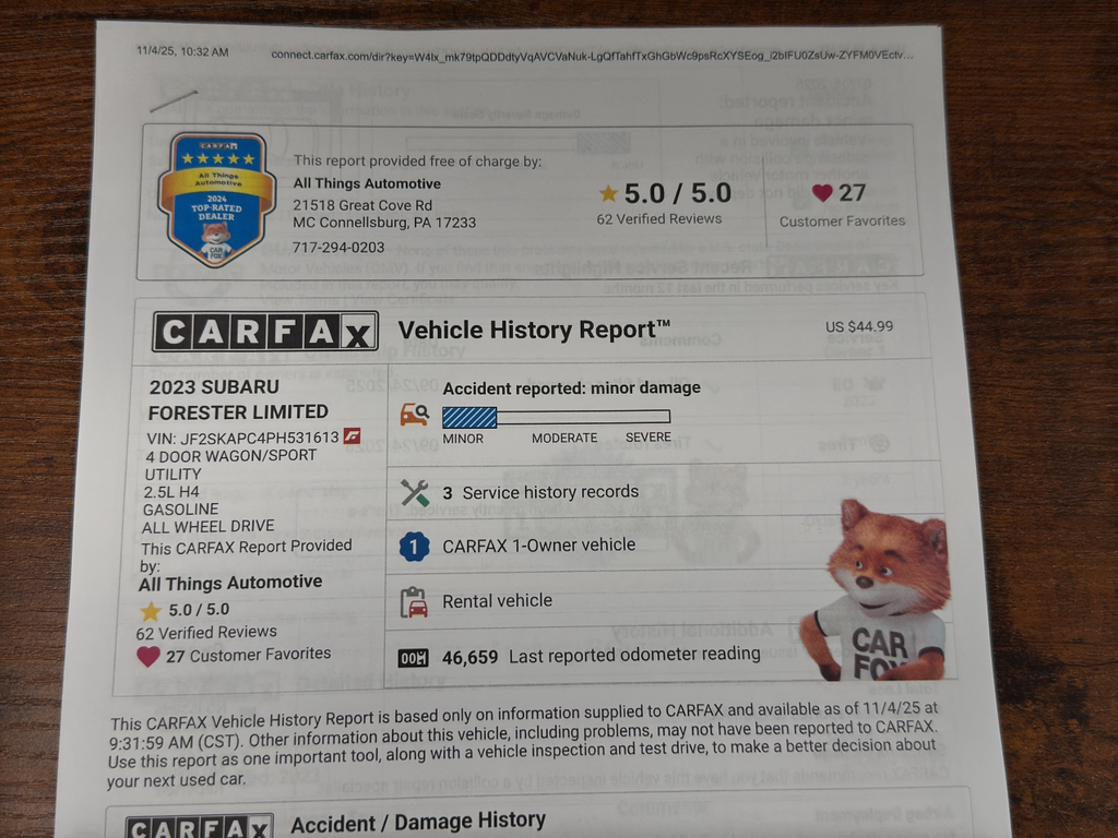 We're offering the best price on this well-maintained 2023 Subaru Forester Limited in the area — a rare opportunity to own a top-trim Subaru with high-end features at a competitive value. Financing options are available for qualified buyers, and a vehicle history report can be provided upon request.