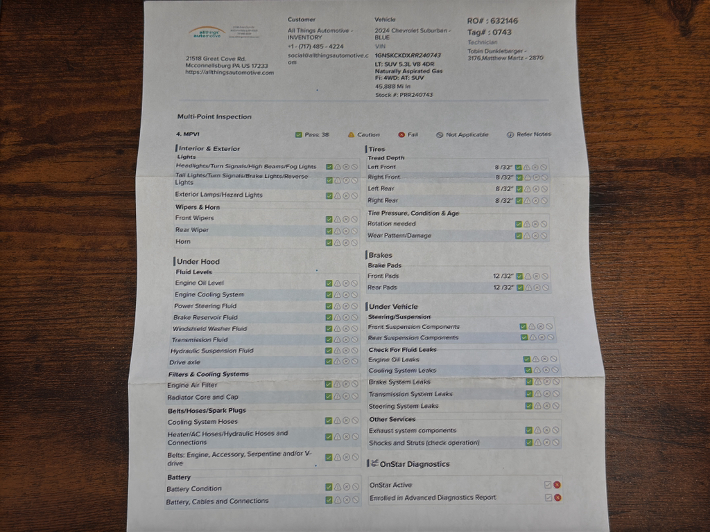 Every vehicle at All Things Automotive undergoes a full mechanical inspection and standard service including a brake caliper service, oil change, new engine and cabin air filters, and multi point inspection! All wearables are no less than double the state safety minimums.