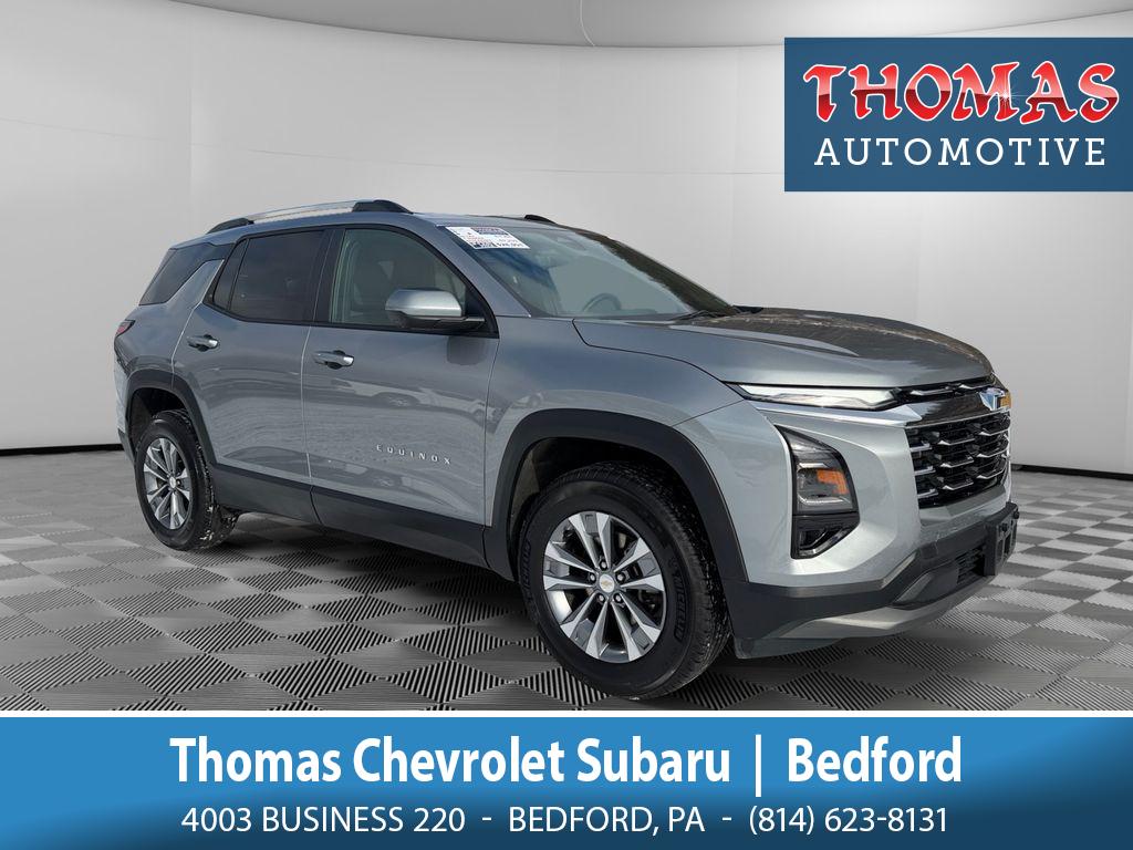 2025 Chevrolet Equinox AWD LT – 21,183 miles – Bedford, PA This 2025 Chevrolet Equinox AWD LT pairs efficient performance with modern comfort, featuring a 1.5L 4-cylinder gasoline engine and all-wheel drive for confident handling in varied road conditions. With only 21,183 miles, this Chevrolet Equinox offers low mileage for its model year, making it an excellent value for buyers seeking a nearly-new crossover. Inside, premium amenities elevate your daily drive: leather seats for comfort, a heated steering wheel for cold mornings, and an integrated navigation system to keep you on course. Advanced safety features such as Lane Keep Assist enhance driver confidence and help maintain lane position during highway travel. This vehicle also comes with a CARFAX Clean Report, providing documented history and peace of mind. Priced competitively, this Chevrolet Equinox represents the best price in the area for a well-equipped AWD crossover with low miles and a desirable feature set. Located in Bedford, PA, it's ready for your test drive and immediate delivery. Whether you commute through changing weather or need a versatile family vehicle, the 2025 Chevrolet Equinox AWD LT balances fuel-efficient performance, modern tech, and comfort. Contact us to schedule a viewing or to learn more about financing options and the vehicle's CARFAX details. Act now to secure this low-mileage Chevrolet Equinox at the best price in Bedford.